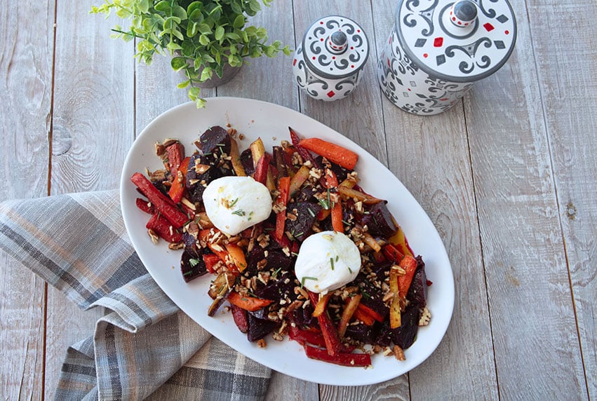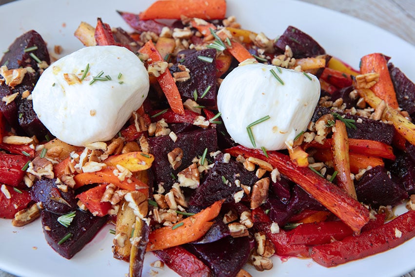 Roasted Beets & Carrots Topped With Creamy Burrata Cheese
